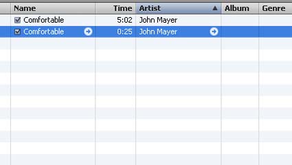 6.Una volte che la conversione é completata potrete vedere un secondo file sotto la canzone originaria con gli stessi attributi ma dalla lunghezza ovviamente inferiore.