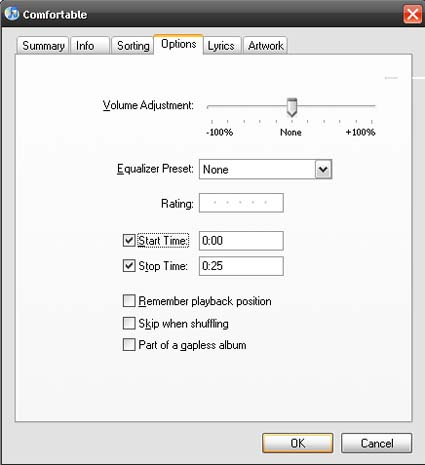 4.Selezionate la sezione della canzone che volete usare come suoneria. Settate quindi il giusto tempo di start e di stop del file. Cliccate su OK quando avete finito.