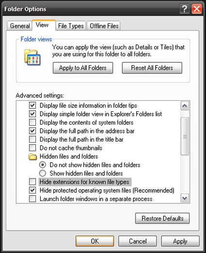 8b.Su PC: dovete abilitare la visualizzazione delle estensioni dei file. Per fare ciò andate su Risorse del Computer e cliccate su “Strumenti” e “Opzioni Cartella”. Nel menu “Visualizzazione” deselezionare la casella “Nascondi le estensioni per i tipi di file conosciuti”.