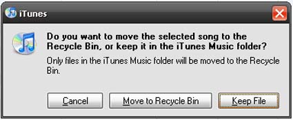 7.Per evitare disordini, é raccomandabile eliminare la canzone convertita dalla libreria iTunes. Per fare ciò vi basta semplicemente cliccare sulla nuova canzone con il tasto destro e selezionare “Delete”, confermare la rimozione ma facendo attenzione a scegliere l’opzione “Keep File” e non “Move To Recycle Bin”.