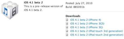 Apple Rilascia iOS 4.1 Beta 2 per iPhone 4, 3GS, 3G e iPod Touch [Solo Sviluppatori]