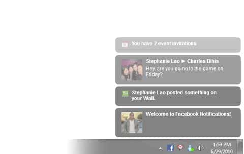 Se avete la necessità di controllare molto spesso tutto quello che succede su Facebook senza aprire il browser potete utilizzare Facebook Desktop. Questo è un client molto leggere che rimane nella system tray, e ti avvisa non appena succede qualcosa su Facebook. Gli avvisi vengono emessi tramite dei pop-up sul desktop (come i messaggi mail di Outlook) e si dissolvono automaticamente dopo qualche tempo.