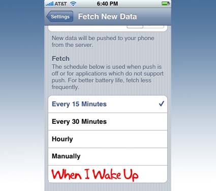 Praticamente se mettiamo l’iPhone in modalità stand-by le nostre nuove email non verranno scaricate. Questo comportamento dovrebbe essere legato alle nuove impostazioni utilizzate da Apple per salvaguardare la durata della batteria con il rilascio del software 2.1. Infatti l’intervallo di scaricamento di 15 minuti é la principale causa di prosciugamento della batteria dato che l’iPhone non va mai in una modalità di stand-by profonda.