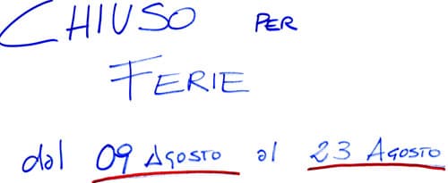 Chiuso per ferie! Fino al 23/08/2010