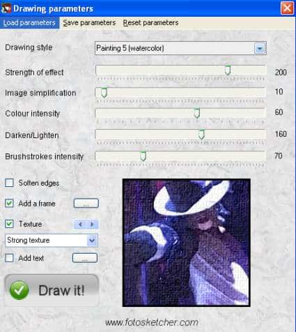 Fotosketecher è una applicazione gratuita che vi aiuta a convertire le vostro foto digitali in dei bellissimi dipinti in modo automatico. Se volete convertire un ritratto, un bel paesaggio in un dipinto o uno schizzo FotoSketcher fa per voi. Ci sono diversi stili preconfigurati, ma potete divertirvi a cambiare le varie opzioni per dare un effetto originale alle vostro foto.