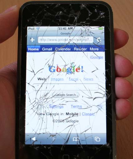 L’utente racconta che il suo iPod, scivolato dalla tasca e caduta per terra, é stato investito da un pickup che passava dietro. Vista la strada non in perfette condizioni l’ipod ha riportato ingenti danni sia sul display con numerosissime spaccature sia sul retro con varie ammaccature.