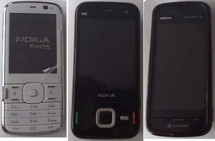 I nomi dei prossimi cellulari Nokia dovrebbero essere: N79, N85 e 5800 XpressMedia (Tube) (da sinistra a destra nella foto)