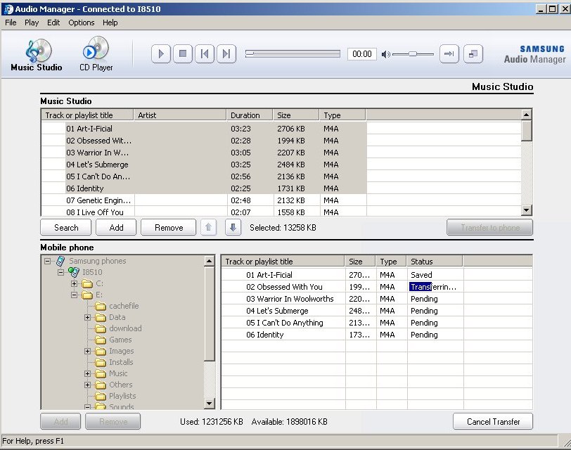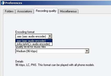 La musica viene codificata di default in aac con basso bitrate. Un buon settaggio per la maggior parte della gente ma, chiunque con un pò di esperienza cambierà questo settaggio in eAAC+ per ottenere la miglior qualità audio e sfruttare al massimo l’eccellente hardware a disposizione del Samsung Innov8.