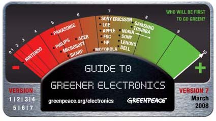 I criteri di valutazione sono stati sono stati rafforzati e quelli di greepeace hanno tenuto conto anche dell’emissione di gas serra, prendendo come parametri i limiti del protocollo di Kyoto. Risultato è che tutte le aziende leader nel settore hanno perso punti scendendo al di sotto del voto 5. Ricordiamo che il massimo è di 10, quindi tutti rimandati a settembre. Eccezione sono Sony Ericsson e Sony che superano di poco la media del 5. Ecco la classifica: