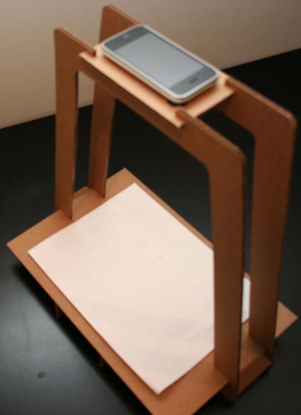 Tenere l’iphone in posizione parallela al foglio da scannerizzare in modo fermo e ad una certa distanza é quasi impossibile. Questa soluzione fatta in casa vi permetterà di realizzare un comodo ed economico supporto per soddisfare questa esigenza ma soprattutto vi darà la possibilità di svagarvi e rilassarvi attraverso un sano lavoro manuale. La realizzazione é davvero semplice, anche per il peggior artigiano. Vi basterà prendere dei fogli di cartone, magari cannibalizzando qualche scatolone, e ritagliare le sagome che trovate qui di seguito stampandole su foglio A4. (cliccare sull’immagine per aprirla in un formato più grande)