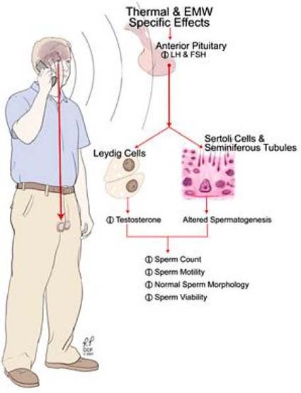 Questo studio é basato su una precedente ricerca sugli effetti delle onde elettromagnetiche (EMV) negli studi sugli animali che hanno hanno provocato effetti dannosi sulla funzione testicolare e sulla linea germinale maschile. Insomma risultati del tutto simili a quelli che hanno i cellulari sulla mobilità dello sperma umano.