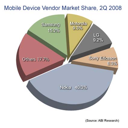 ABI reasearch ha pubblicato i dati realativi al secondo trimestre del 2008 per quanto riguarda il mondo della telefonia mobile. Ci sono risultati già noti e alcune sorprese.