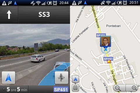 Oltre a tutte queste indicazioni, da qui potete ricavare anche la visualizzazione dei vostri amici (grazie a Latitude) oppure andare direttamente in modalità Street View, guardando le immagini da Street View del posto in cui state passando. Quando sarete molto vicini alla destinazione, il navigatore passa direttamente alla modalità Street View per aiutarvi ancora di più a ritrovare quello che stavate cercando.