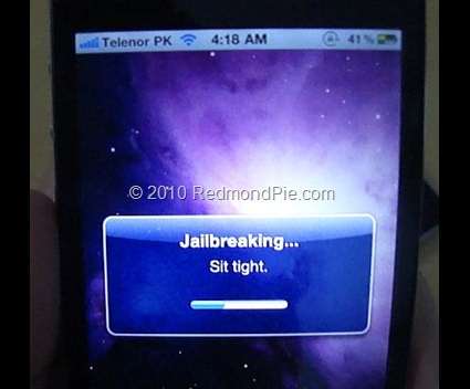 6.Finito lo scaricamento dei dati comincerà la procedura di jailbreak vera e propria. Ovviamente mettetevi comodi e non toccate nulla. Aspettate solo che il processo venga completato.
