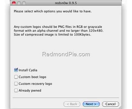 5.Ora selezionate “Install Cydia” e cliccate su “Next”.
