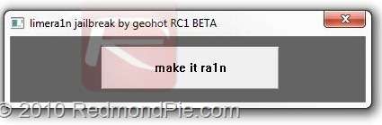 3.Finito l’aggiornamento, lasciando iTunes aperto e l’iPhone/iPod collegato, avviate Limera1n e cliccate sul pulsante “make it ra1n”. Se possedete Windows Vista o Seven avviate l’applicazione come amministratore.