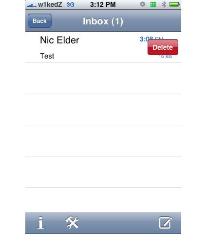 SwirlyMMS é quella che possiamo chiamare la vera soluzione al problema di inviare MMS. Ho infatti ricevuto il messaggio spedito in tempo reale con tanto di avviso sonoro e aumento del contatore dei messaggi ricevuti. Possiamo rispondere all’MMS, inoltrarlo o cancellarlo dalla nostra inbox. Una volta iniziato ad usare questa applicazione ho avuto la netta sensazione che il mio iPhone fosse finalmente completo.