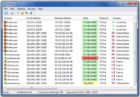 Per fare questo potete utilizzare TCPEye, un ottimo programma gratuito che crea una lista con tutte le applicazioni che in quel momento stanno utilizzando la connessione internet. Oltre a questo mostra anche i siti a cui questi programmi sono connessi e il path del eseguibile del programma.