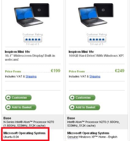 Incredibile quello che ho visto sul sito della Dell, il mini 10v viene venduto con Ubuntu il quale è spacciato per sistema operativo Microsoft. Guardate l’immagine sotto: