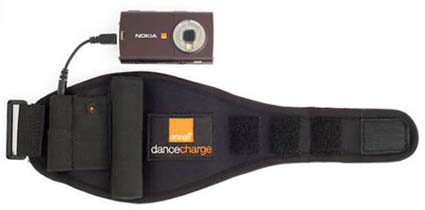 Si tratta del caricabatterie Dance Charge: costituito da una fascia elastica in neoprene da portare al braccio con chiusura in velcro, del tutto simile alla fascia utilizzata dai runner per trasportare il proprio lettore mp3. Il funzionamento è molto semplice: grazie all’utilizzo di pesi e magneti è in grado di trasformare l’energia cinetica del movimento in energia elettrica, immagazzinandola in una batteria che sarà sempre a disposizione nel momento in cui il cellulare dovesse scaricarsi. Il tutto per un peso di 180 grammi. Che dire? sicuramente l’idea è innovativa e nobile visto che si pensa sempre di più ad un tipo di energia pulita. Dubito però che chi non ha dimestichezza con lo sport si metta a saltellare su e giù per il centro magari vestito tutto a puntino.