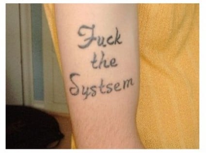 Osceno l’ultimo tatuaggio… quanto ridere!!! ma prova a pensare il tipo quando ha finito e si è guardato la spalla… chissà la sua reazione!!! io avrei ucciso il tatuatore!