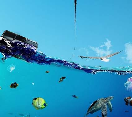 Partendo da alcune fotografie gratuite dai vari siti di microstock, è possibile con l’aiuto di fantasia e Photoshop, realizzare una veduta surreale dell’oceano e dei suoi abitanti, messi in pericolo dalla minaccia dei barili di petrolio, che riversano l’oro nero direttamente nel loro habitat.