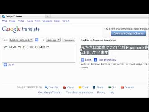 La frase sopra viene tradotta in “Our Company is Really Using Facebook“. Potete vedere questo bug soltanto sulla versione US di Google Translate. Ecco un video dimostrativo del BUG: