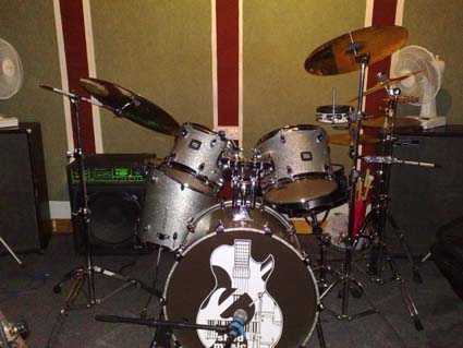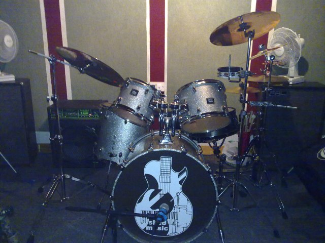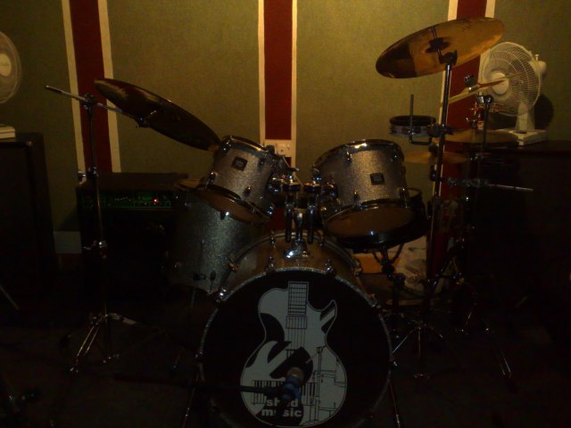 Ecco la foto di una batteria. Le condizioni di luce sono quelle tipiche che potreste avere all’interno di un club o di un pub. Il soggetto é a circa due metri di distanza e poco illuminato dalle luci artificiali. Andiamo a vedere come si comportano le diverse tipologie di flash. Qui di seguito la foto fatta con il singolo LED dal nokia N95 (cliccate sulle foto per ingrandirle):