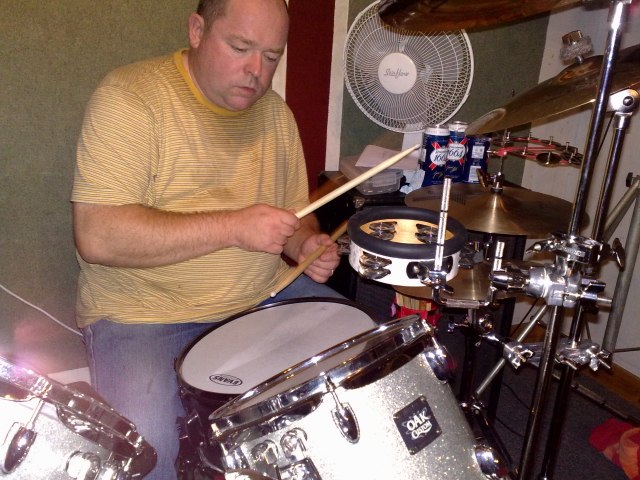 Ecco la foto di un batterista, scattata con l’N95. Notate la sfocatura sul braccio e sulla bacchetta, più la sfocatura sulle pale del ventilatore: