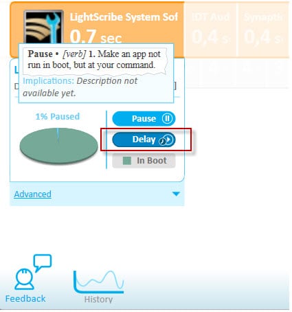 La maggior parte dei processi che vengono avviati nella categoria Potentially Removable e No-Brainer possono essere posticipati nella esecuzione tramite il pulsante Delay. Il programma mi è piaciuto molto e vi devo dire che è molto utile per togliere delle schifezze dallo startup del vostro computer.