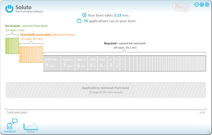 Soluto è una applicazione davvero innovativa che vi aiuterà a velocizzare lo startup del vostro computer. Grazie a Soluto potete capire tutto quello che succede al avvio di Windows e come potete velocizzare questo avvio. Soluto vi indicherà le applicazioni che rallentano il processo di avvio e ci darà l’opportunità di rimuoverle, ritardare l’avvio di queste applicazioni dopo l’avvio di Windows oppure rimuoverle dallo startup di Windows per velocizzare l’avvio.